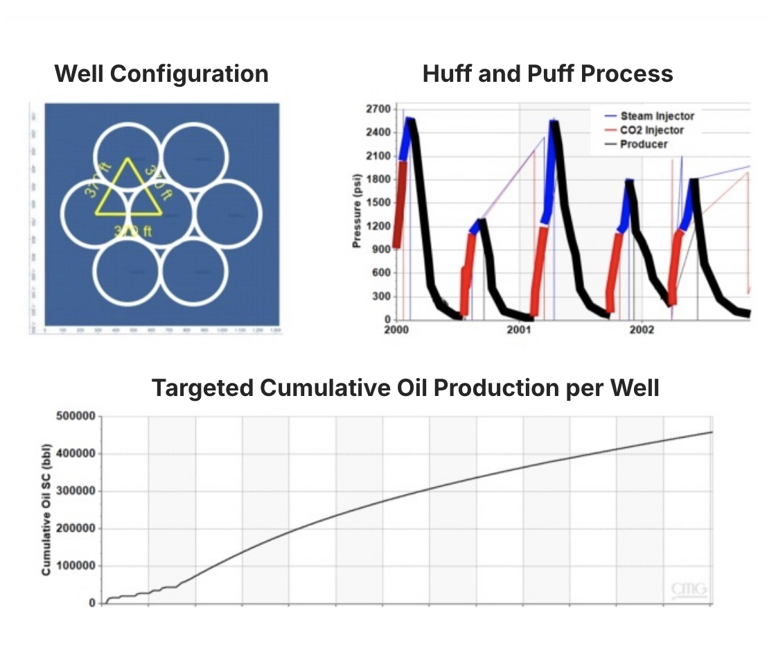 Use downhole heater for first 70,000 bbls, then steam and CO2 for 20-year expected life of well